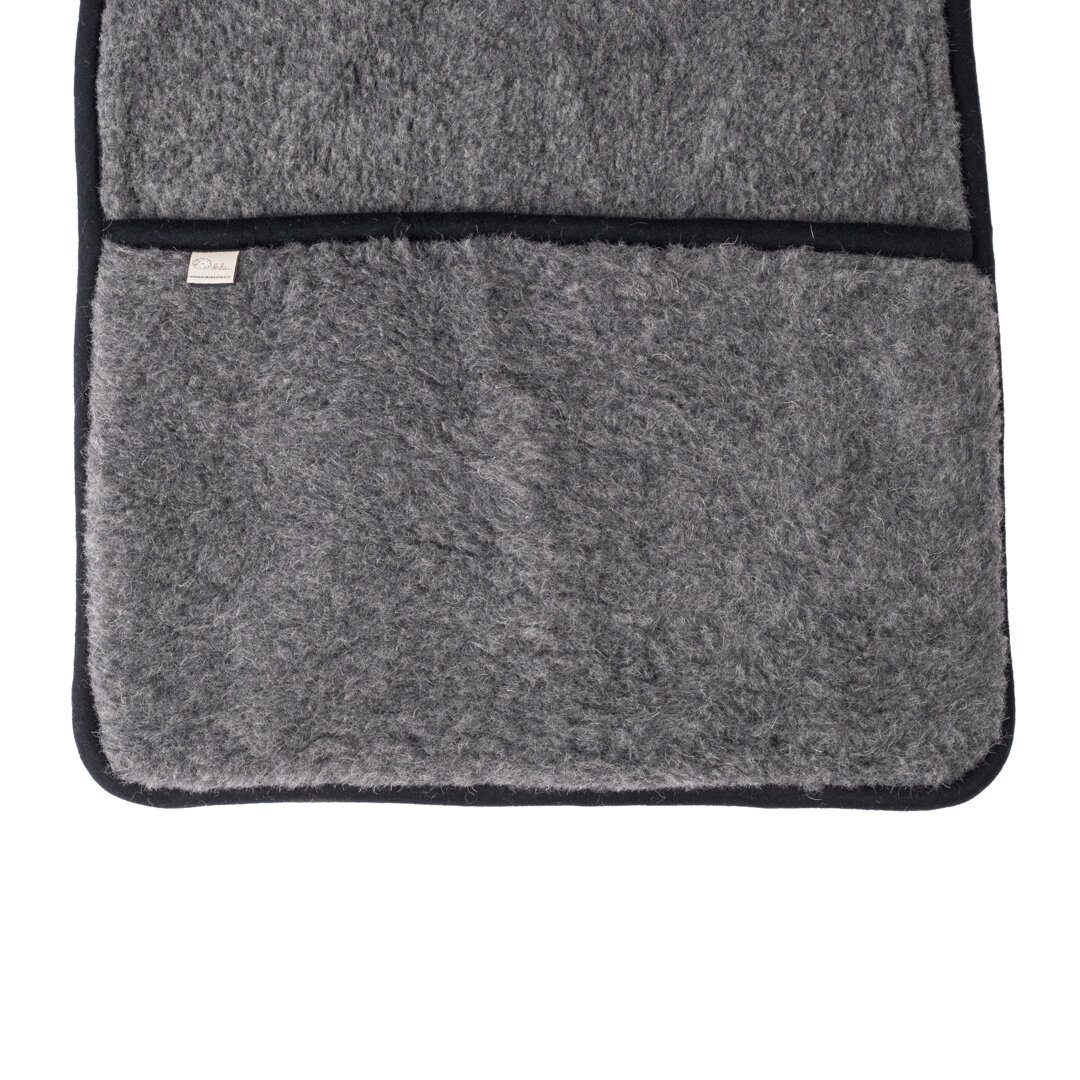 This armchair seat cover made of fine Merino wool will not only keep you arm but also protect your chair. There are practical pockets on the sides where you can keep your remote control, magazines or a little snack. Enjoy long evenings in an armchair with this fluffy companion. You can choose from dark grey colour or natural white.