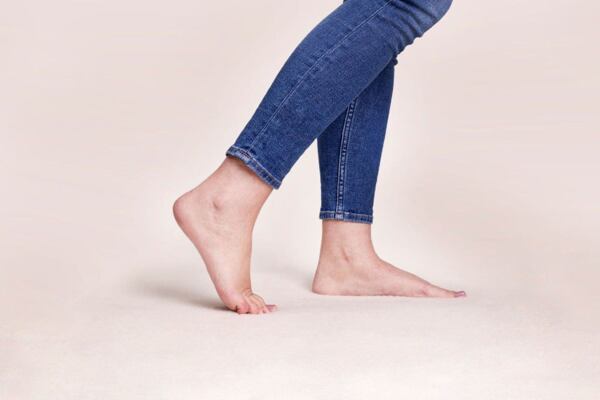 Stand on a mat (if you do not have enough stability, lean lightly on a table/wall or sit in a chair) and raise your feet on tiptoes, then lower back to the ground and rock back onto your heels. Alternate between the toe and heel positions to stretch the foot.