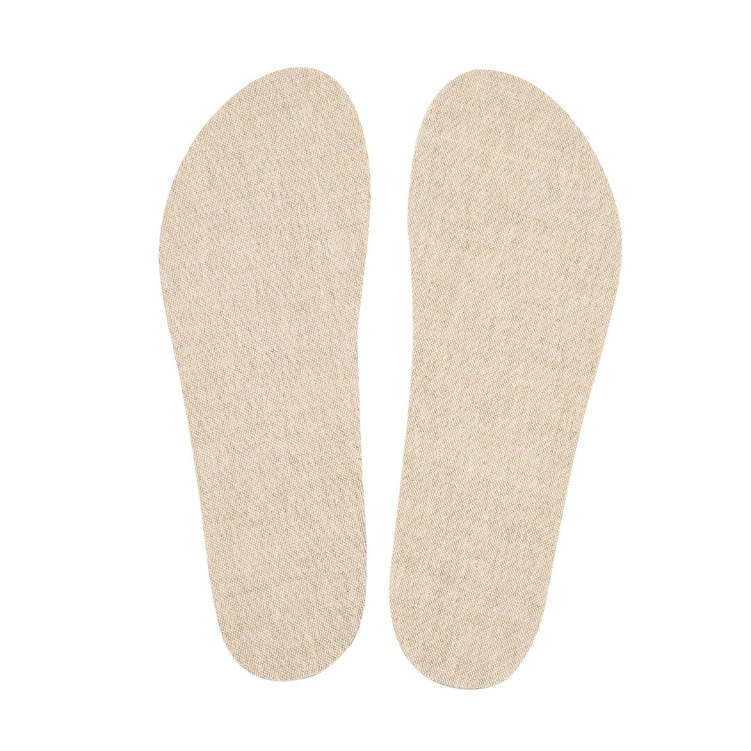 Soft insoles made from recycled material and hemp fabric give each pair of shoes a new lease on life. Hemp with a cotton blend is a strong, durable fabric that wicks moisture away from the skin and maintains the proper shape of the foam pad.