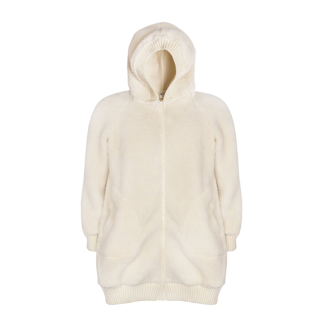 What will keep you nice and warm all winter? Try combining all the best features in one piece of clothing - soft sheep wool, long cut, a hood to protect your neck and head from the cold and drafts, pockets and a zipper.