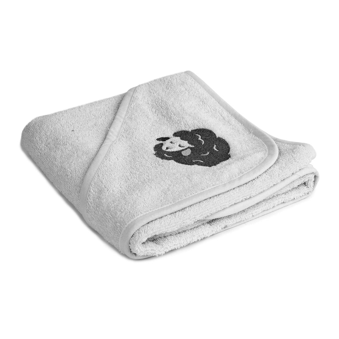 One of the corners has a layer of the fabric over it as well, so you can put it over a baby’s head as a hood. A plain towel thus turns into a kind of a swaddle blanket or a bathrobe, protecting tiny ears from cold air. This hooded baby towel is made of terry towelling, a soft fabric that is great at absorbing moisture. The embroidered Vlnka the sheep motif make this towel look really cute.