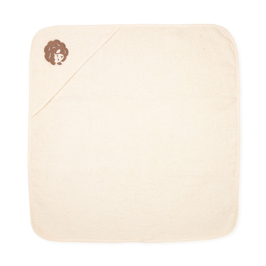 One of the corners has a layer of the fabric over it as well, so you can put it over a baby’s head as a hood. A plain towel thus turns into a kind of a swaddle blanket or a bathrobe, protecting tiny ears from cold air. This hooded baby towel is made of terry towelling, a soft fabric that is great at absorbing moisture. The embroidered Vlnka the sheep motif make this towel look really cute.