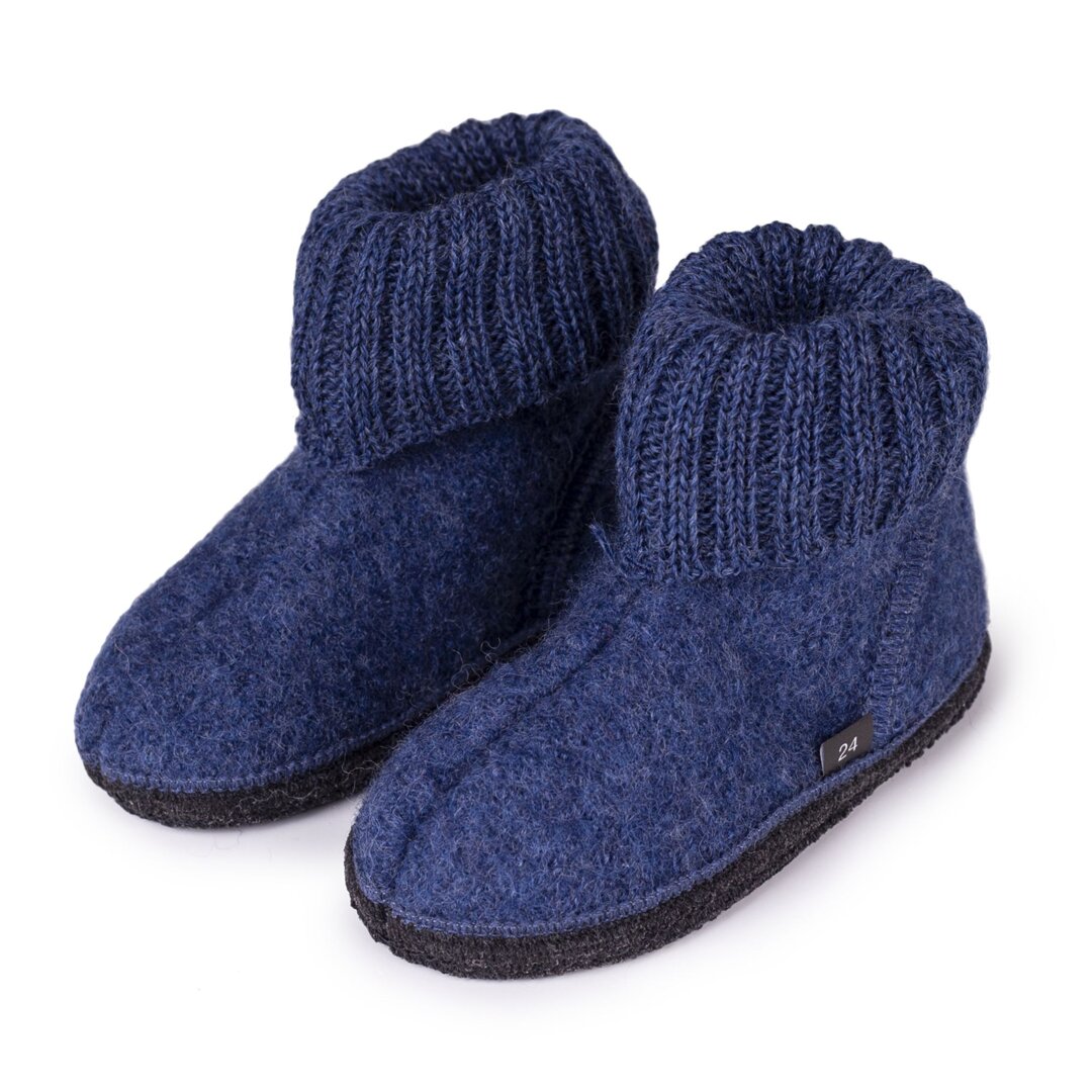 These “Adam” felt TV slippers are a modern twist on the traditional TV slippers, using wool in a different form. Wool in the form felt is still as light, breathable and warm as its fluffy counterpart. The soft-knit top is not just decorative, it keeps your ankles warm too. The sole is also made of felt and is covered with a thin layer of latex, which is a waterproof and slip resistant.