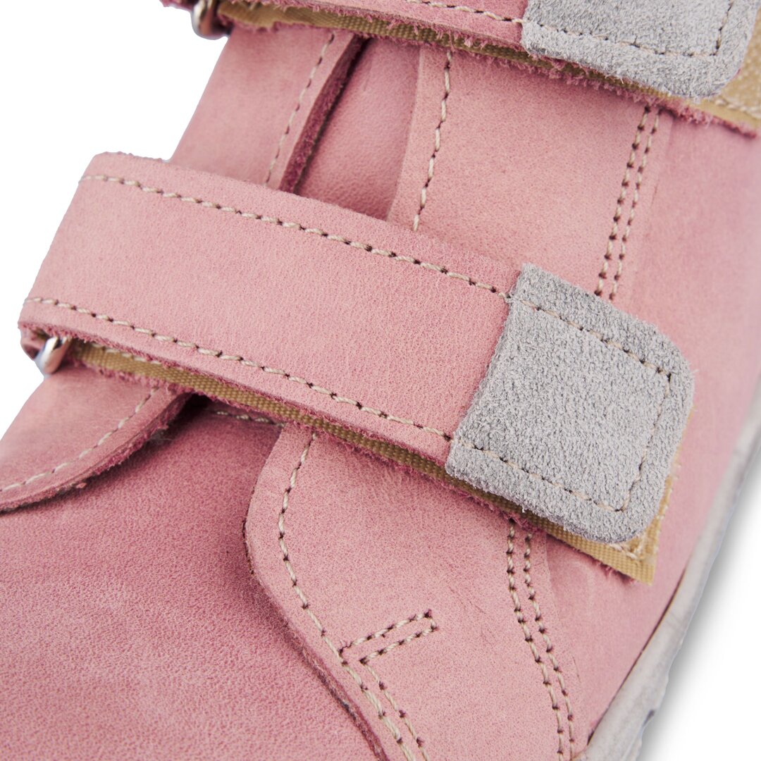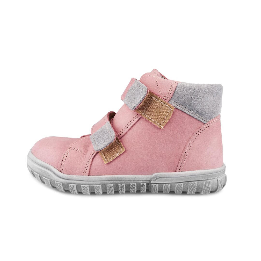 These ankle sneakers made of firm leather are the ideal footwear for children in spring and autumn. The sturdy heel and raised edge around the ankle keep the child's foot stable and in the right position for proper foot development. The insole of the sneakers can be removed and ventilated or replaced with another special insole.