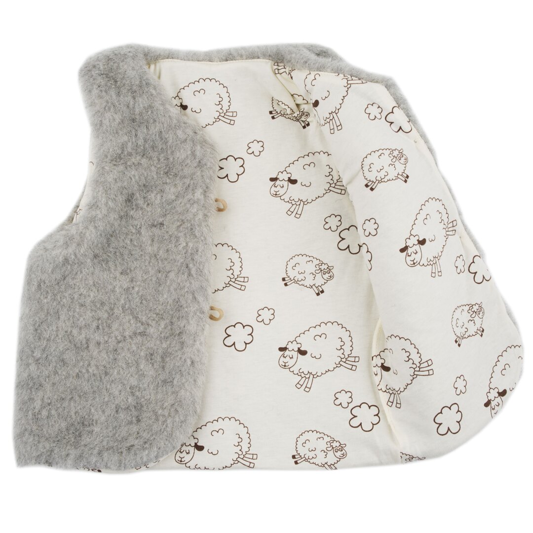 The vest is fastened with buttons, whilst the natural cotton lining has a cute pattern with sheep that will keep your little ones company all day long. The vest is a great choice for children to wear during active play as well as for moments of relaxation, as sheep’s wool is a soft, breathable and high-performance material that keeps the temperature of the body stable.