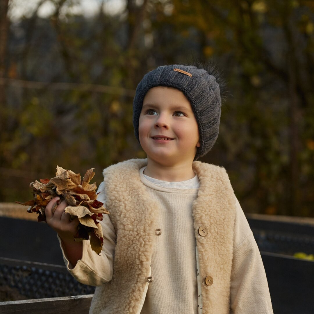 This knitted hat made of fine Merino wool and lined with soft material will protect little heads from the cold and wind. Merino wool is extremely soft as well as warm and breathable, which makes it a great material for hats.