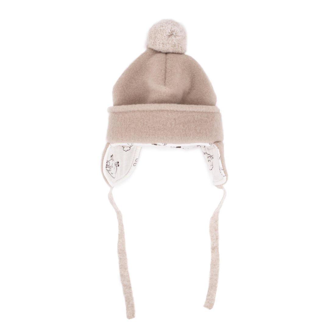 This beautiful woolly hat with a bobble will keep sensitive children's ears warm and comfortable. It can be tied under the chin which means that it will stay on even on the heads of little monkeys who never sit still.