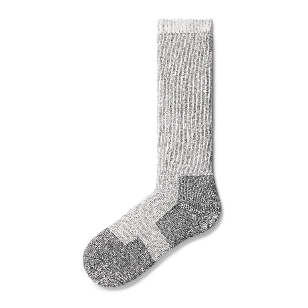 Sheep wool knows well how to regulate temperature and wick moisture away from the skin. The knee-high socks are made from Merino sheep wool with the addition of man-made fibers, which prevent the formation of lumps and increases the lifespan of the material. The sock cuff is wide enough for all-day comfort and holds well on the foot so that the knee-high socks work well during movement.
