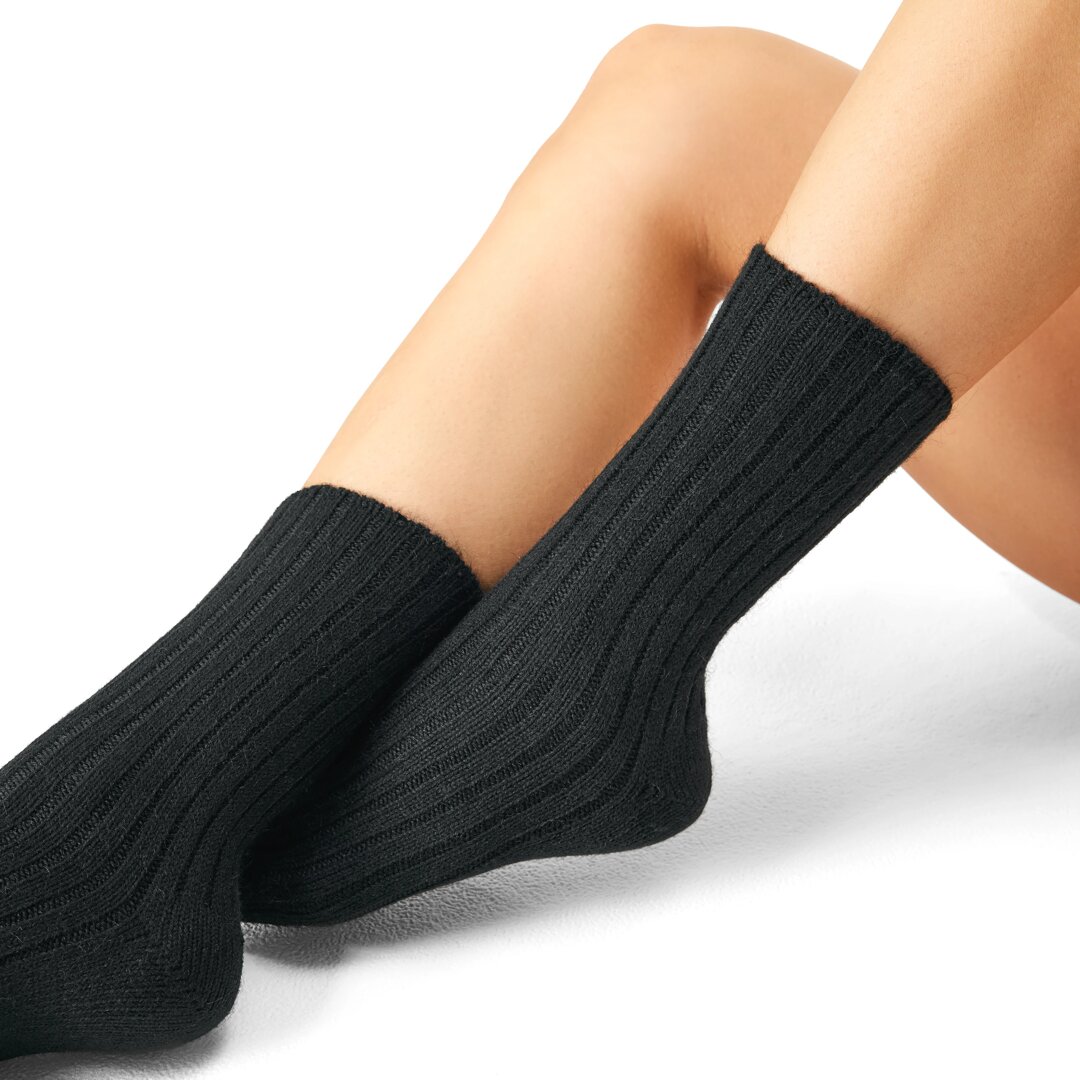 The socks are ribbed, so you will find the top isn’t elasticated. However, they stay on feet well and because they are slightly longer, they are good for wearing in high winter boots or slippers.