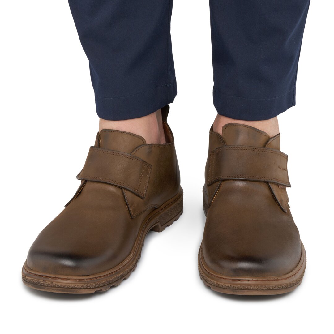 These all-leather, sturdy shoes for men are perfect for spring and autumn, when the mornings are cold and days rainy. They are quick and easy to put on with a stylish and simple Velcro strap, while the slightly higher cut to the ankles offers good protection from cold winds.