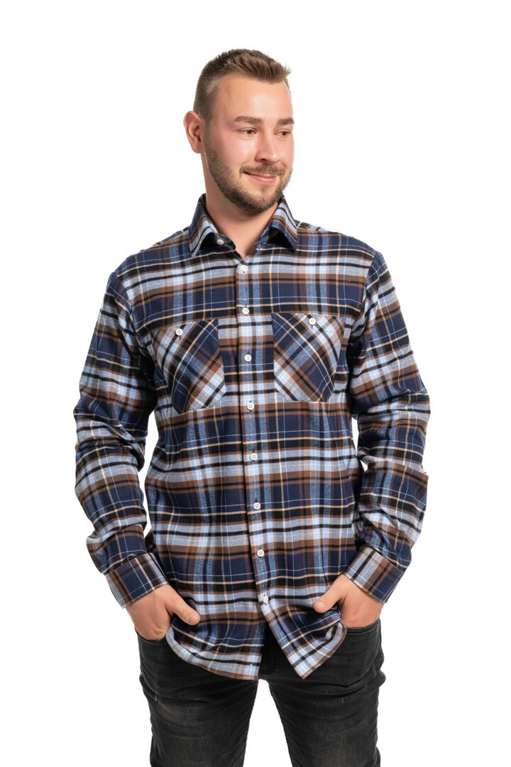 Men's flannel shirt, checkered blue-brown