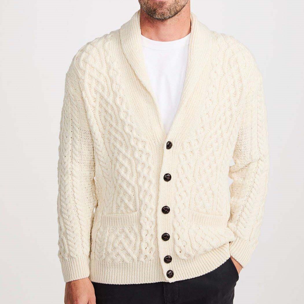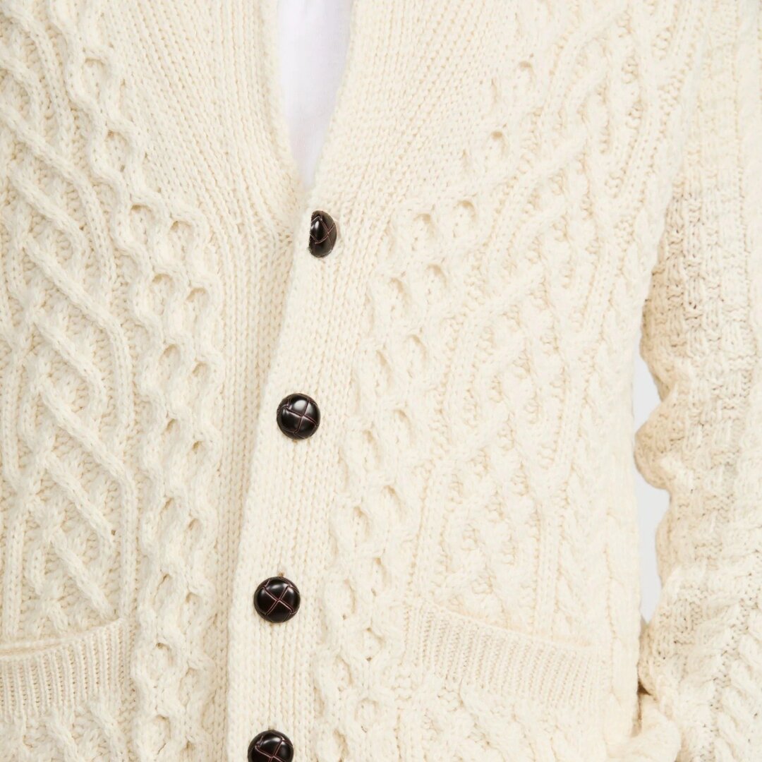 Men's Merino wool sweater with buttons, natural