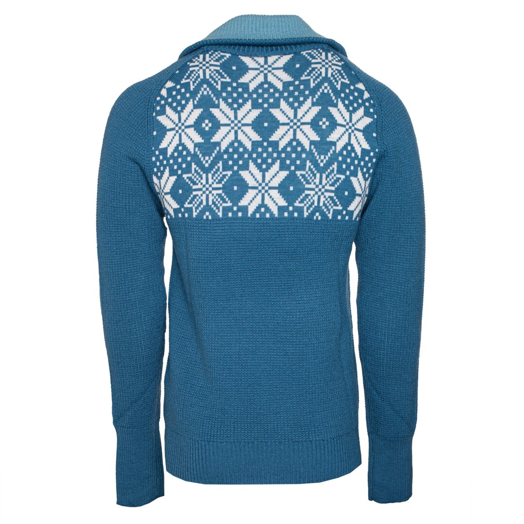 The extra high collar with a zip is great for protecting the neck from cold and draughts, something we all appreciate in wintertime. It also has a chin guard to prevent the zip scratching your chin. The sweater is long enough to protect your entire lower back from cold and the sleeves have thumb holes so that your wrists and hands are kept nice and warm, also stopping the sleeves from bunching up in a jacket or coat.
