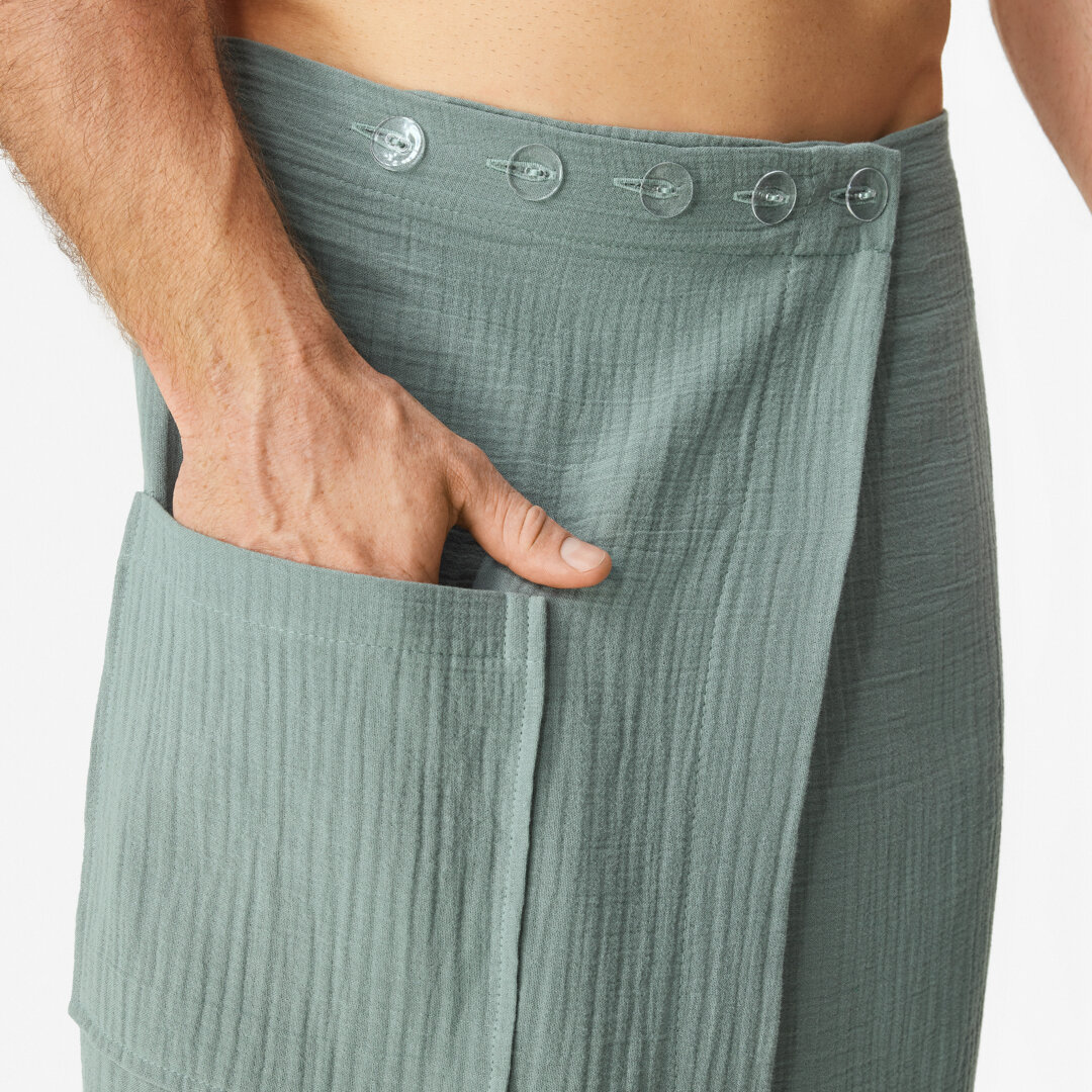 Rest and relaxation in the sauna or other wellness facility is a balm for body and soul. Make this experience more enjoyable with a practical sauna kilt made of muslin material treat yourself to a moment of peace and comfort.