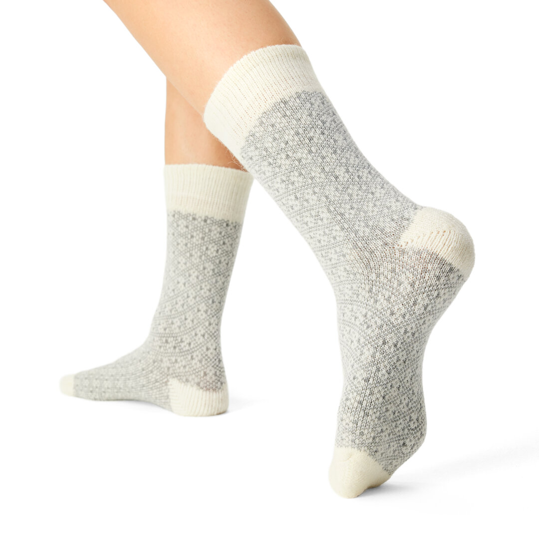 At Woolvilli, we like to keep our feet warm, and these woolen socks with a jacquard pattern also help us do that. Sheep wool is not only a pleasant, but above all a functional natural material that keeps your feet dry and warm.