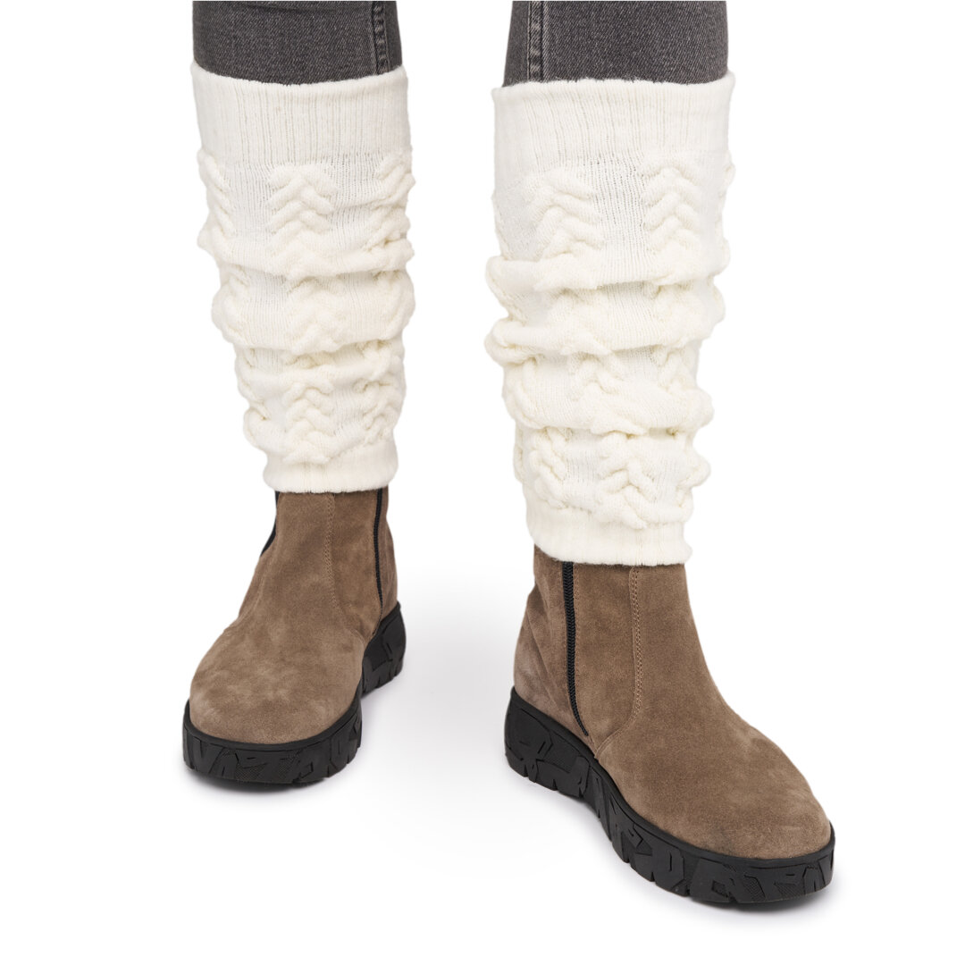 The pattern of these leg warmers imitates traditional knitted socks and stockings that used to be worn with folk costumes. Just like our ancestors, we love to enjoy the warmth of sheep’s wool, and just as their legs were once protected from the cold, wind and snow, so can now be ours.