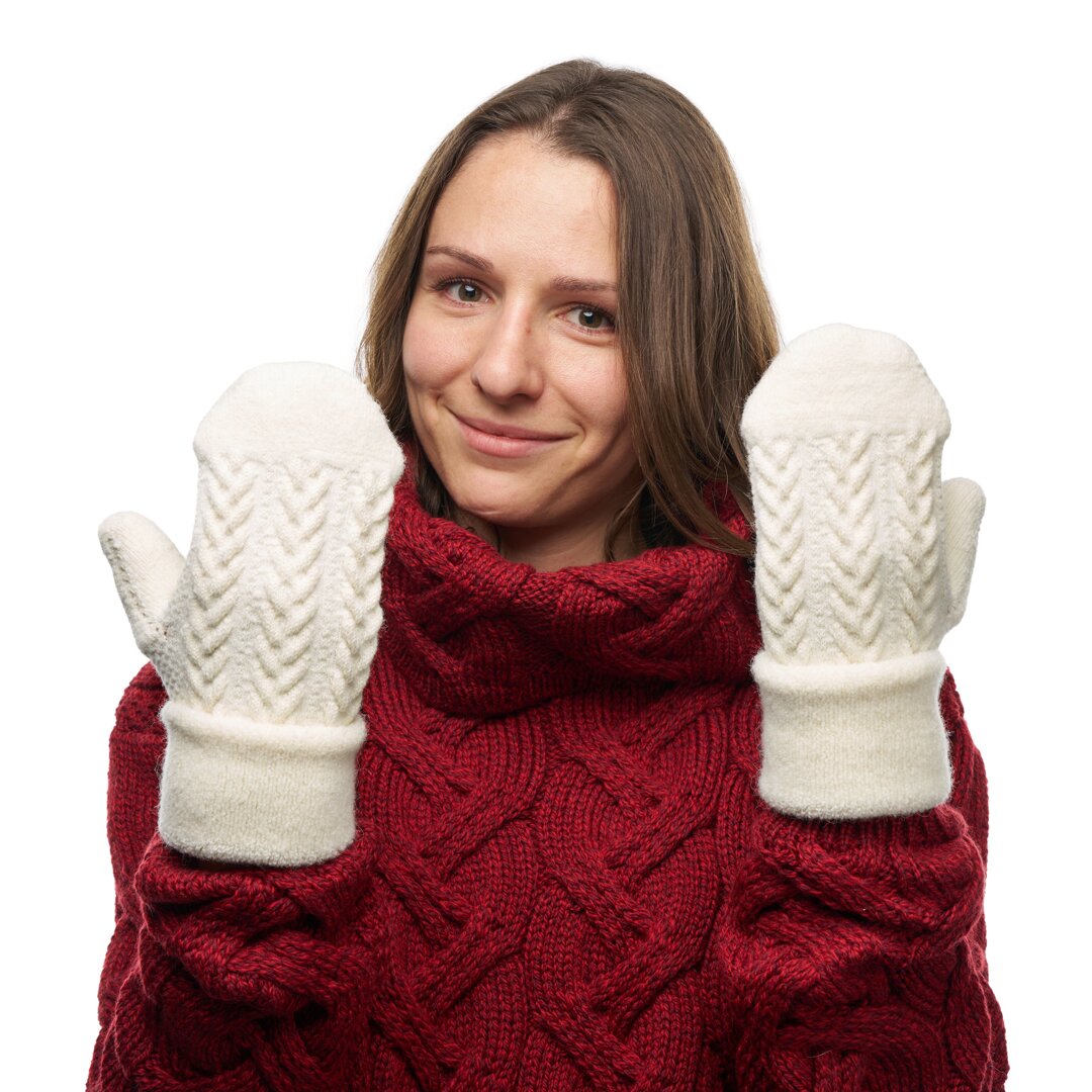 Really warm and soft mittens in a traditional cable knit design that will keep your hands nice and toasty all winter long. Sheep’s wool retains heat even when wet, which is a great advantage where mittens are concerned. It means you can build a snowman or have a snowball fight with the kids and your hands won’t get cold.