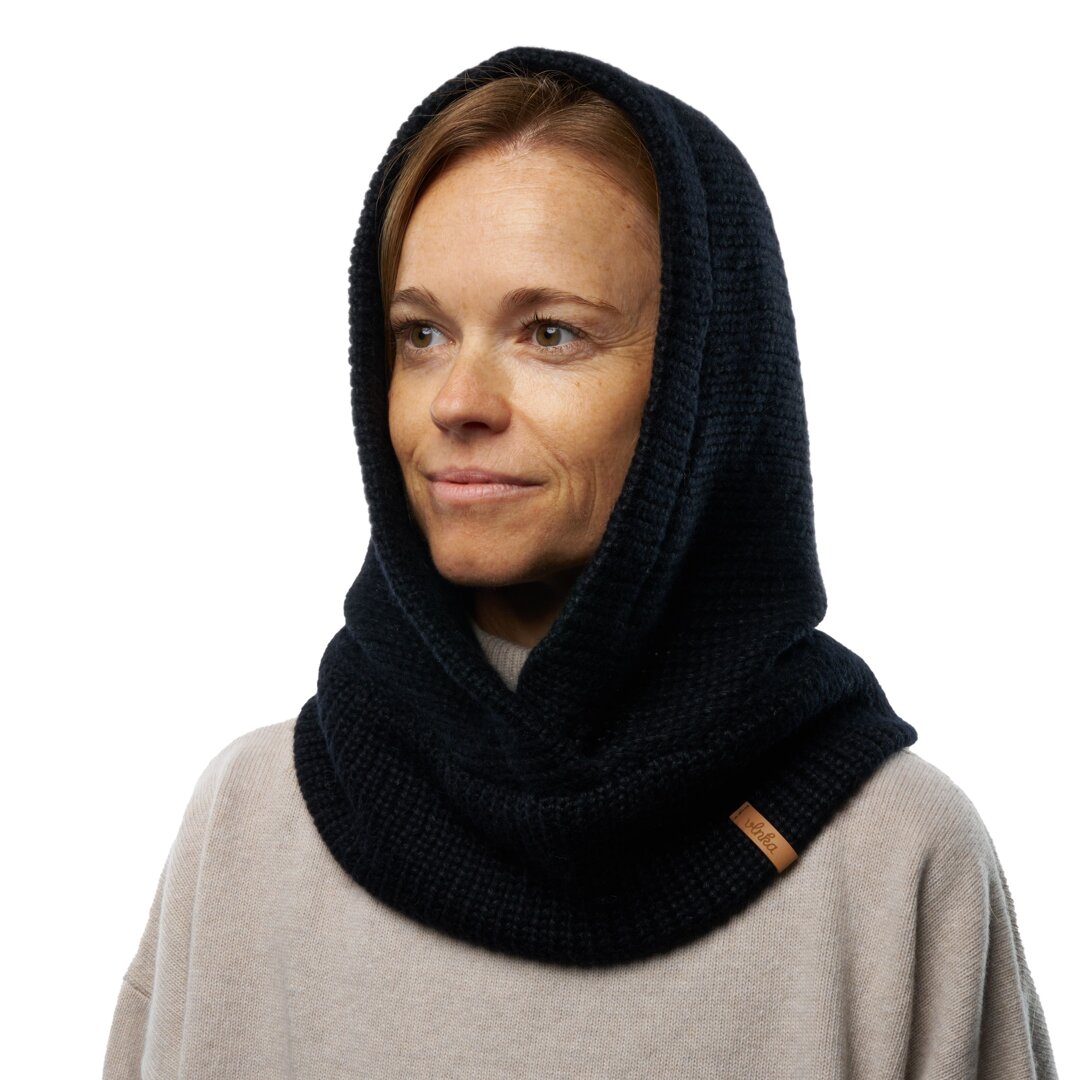 A separate hood to go with a coat or jacket without one. Made of very soft Merino wool, this hood will add a touch of elegance and originality to your wardrobe. It also goes well with a poncho, vest or sweater.