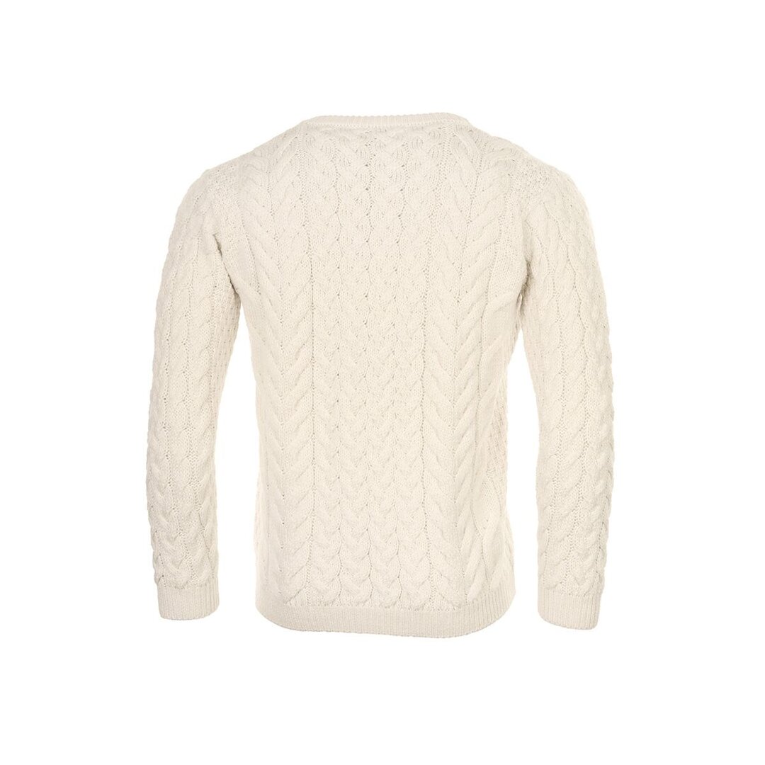 This sweater's classic cut with crew neck and distinctive cable-knit pattern can be worn over a t-shirt or collared shirt, making it suitable for everyday wear and social events. The sweater cut is suitable for both women and men.