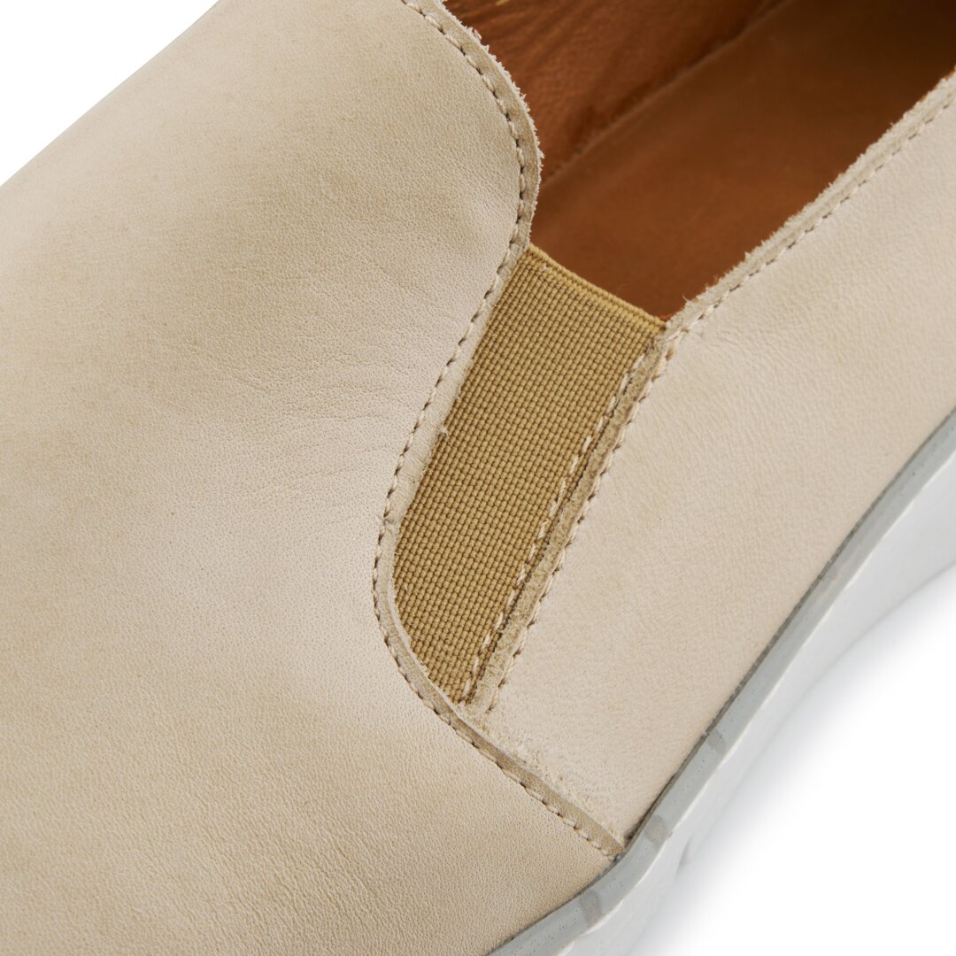 The elastics on the sides make putting the shoes on and taking them off easier, and they also mean the leather upper won’t feel restrictive. The slightly raised heel encourages correct, natural posture, while over time, the leather will mould to your feet for a perfect fit.