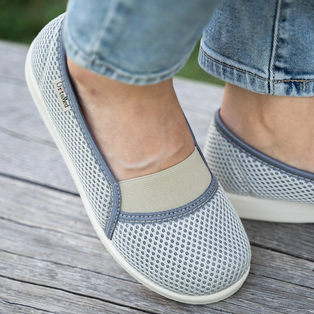 When we get asked about comfortable, functional and at the same time stylish and healthy footwear, we always recommend our ballerina comfort pumps. The fact that they are so light and breathable means your feet will be well ventilated even on hot summer days, while the special soft OrtoMed insole guarantees a cushioned footfall. The heel is slightly raised to prevent swelling and pressure sores that often occur in shoes with a flat sole. There is an elasticated strap which makes them very easy to put on.