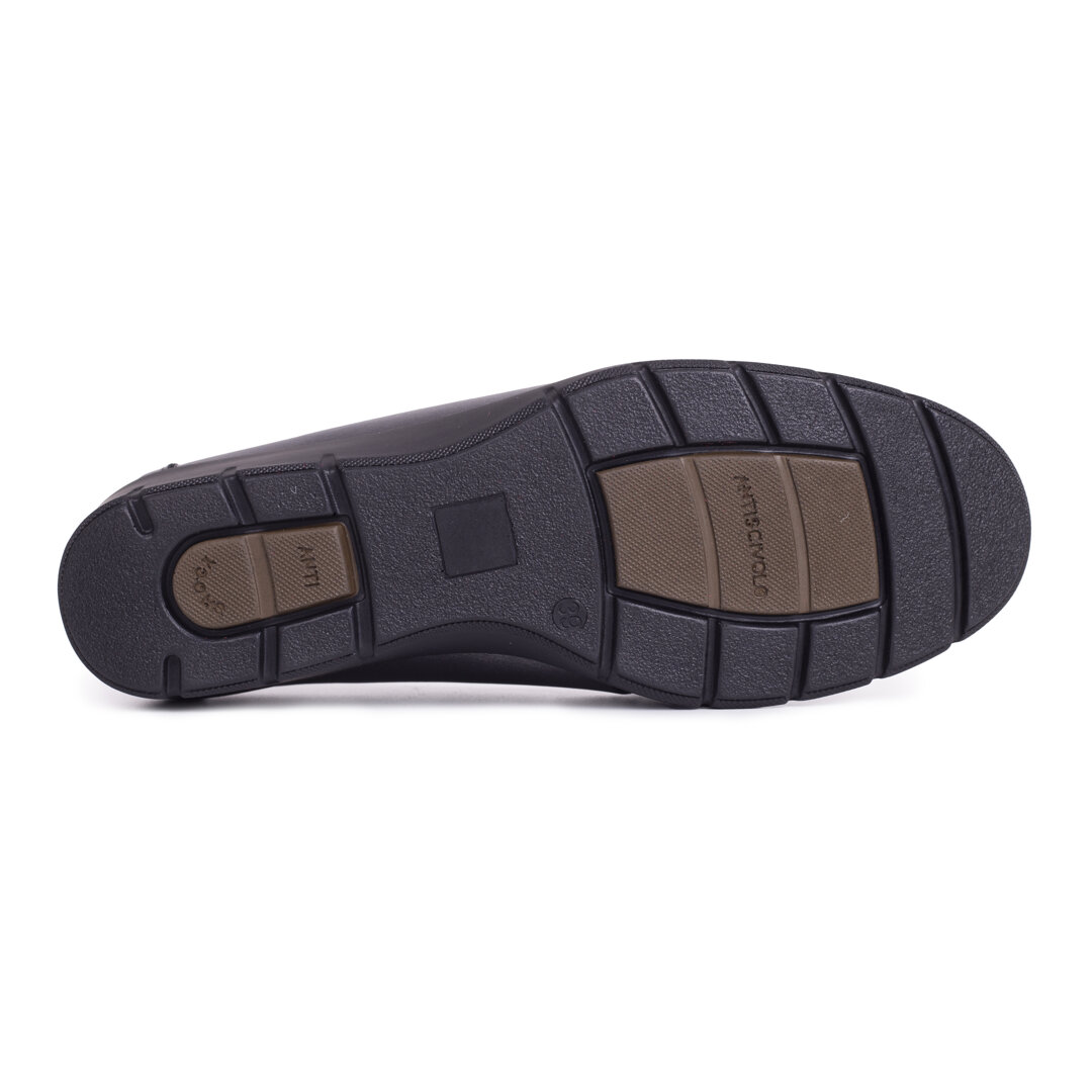 The slightly raised heel encourages correct posture, while the materials mean shock is absorbed with every step, providing relief to the knees and ankles. In addition, there are slip resistant sections on the sole to make walking safer, for example, in the rain or on smooth floors. The shoes are so light you hardly notice that you are wearing them, and over time, the leather upper will mould to your feet for a perfect fit.