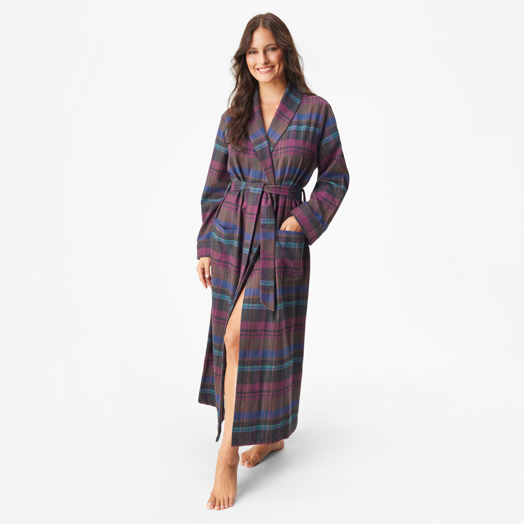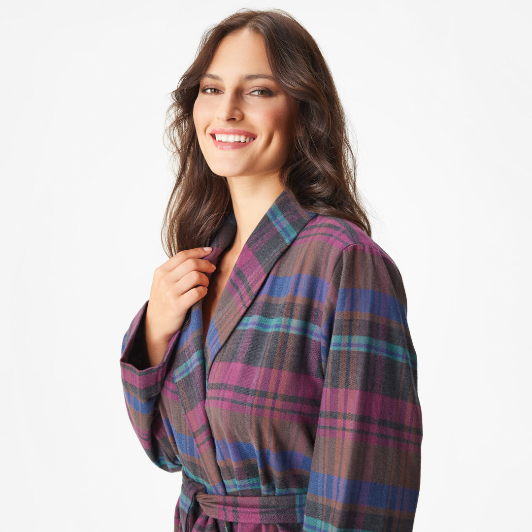 A bathrobe made of warm flannel with a belt and pockets will provide you with maximum comfort during cold days and evenings. Pure cotton offers softness and warmth, while the checkered pattern lends style and elegance.