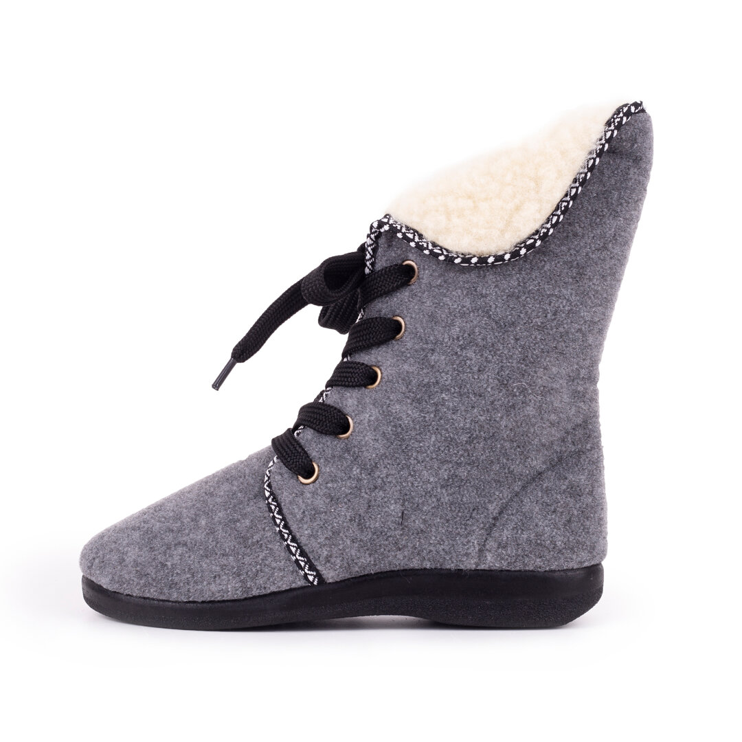 Winter boots have been popular at Woolvilli for several seasons as comfortable shoes for winter. They are easy to put on, feel like slippers, and thanks to the sheep wool they are nice and warm. The new version of the lace-up boots allows the shoe to be opened wide when you put it on, so you can cover your lower legs and protect them from getting dirty.
