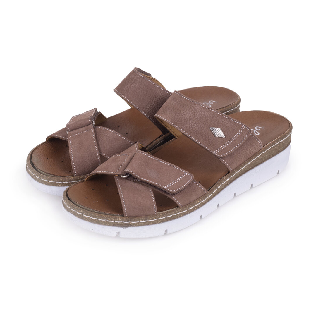 The soft leather insole is both comfortable and durable. The raised heel helps the body hold a correct, naturally straight posture. The leather velcro straps allow you to adjust the shoe to your exact size, making the slip-ons suitable for narrow or wider feet. They are also suitable for high in-steps, bunions, and can be loosened at any time during wear in case of swelling. The shoes are very lightweight and won't put unnecessary strain on the feet.