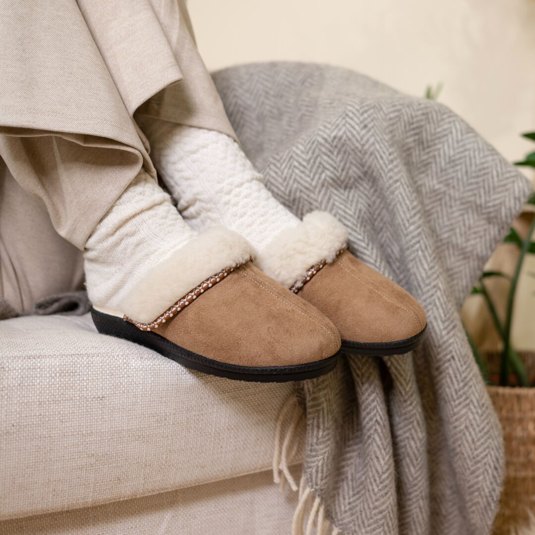 Elegant, comfortable slippers that will keep you lovely and warm. Suitable for people with high arches.