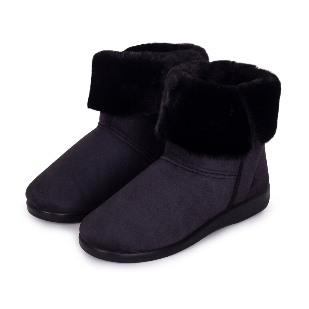These boots are lined with a soft and warm layer of wool and are trimmed with beautiful fur to protect your ankles from bitterly cold temperatures. The upper is soft black suede, suitable for dry days from autumn to spring.