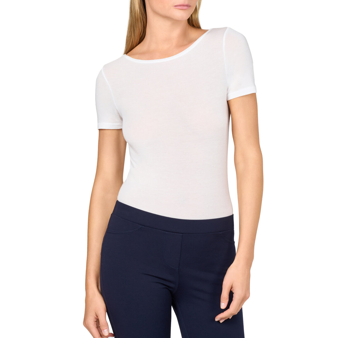 A close-fitting T-shirt is great as a separate, elegant top , and as a warm undershirt for winter. Natural modal and silk fibers combine well with artificial fibers, giving the material durability and flexibility, and increase its lifetime.