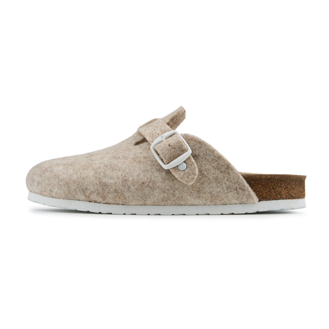Cork slippers made of woolen felt are designed with an adjustable strap on the instep and an orthopedic insole, which anatomically corresponds to the natural shape of the foot.