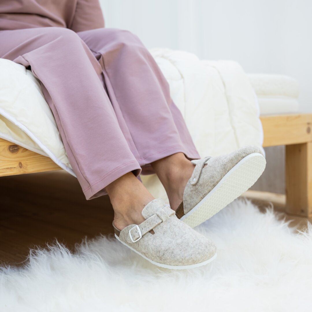 You can enjoy wearing orthopedic cork slippers in comfort all year round. The upper made of woolen felt is designed with an adjustable strapso that you can adjust the shoes to your foot. The orthopedic insole has been made to fit the natural foot shape, to support the longitudinal and transverse arch, and ensure the right posture and natural gait. The shoe has a narrower fit, so we recommend choosing one size larger than you are used to.