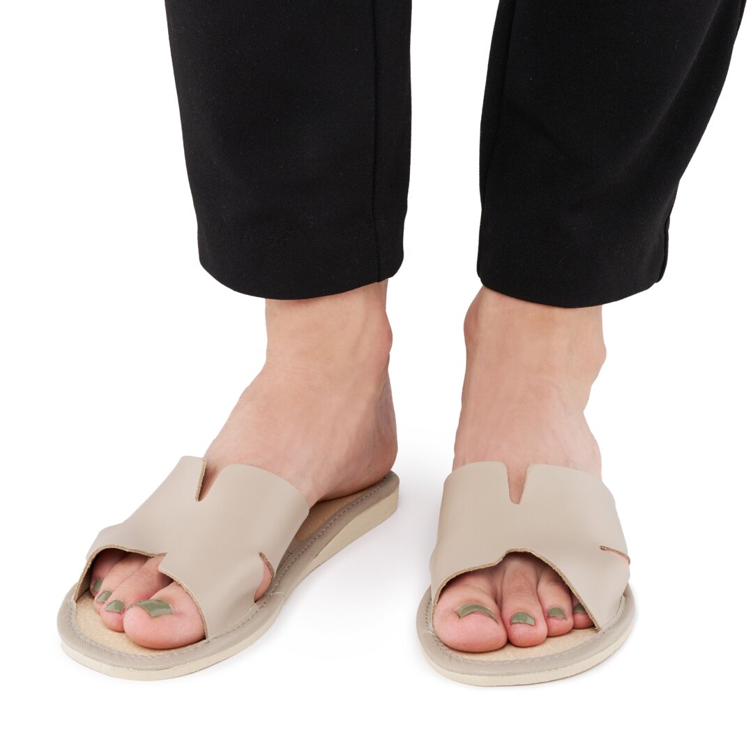Women’s Summer Leather Open-Toe Slippers Beige