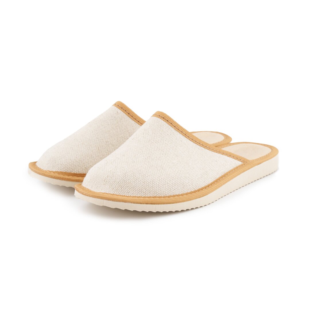 The best shoes to wear at home in summer are breathable, lightweight and comfortable slippers made of natural materials. The leather insole has soft cushioning for arch and heel support, while the upper made of leather and linen moulds perfectly to your feet.