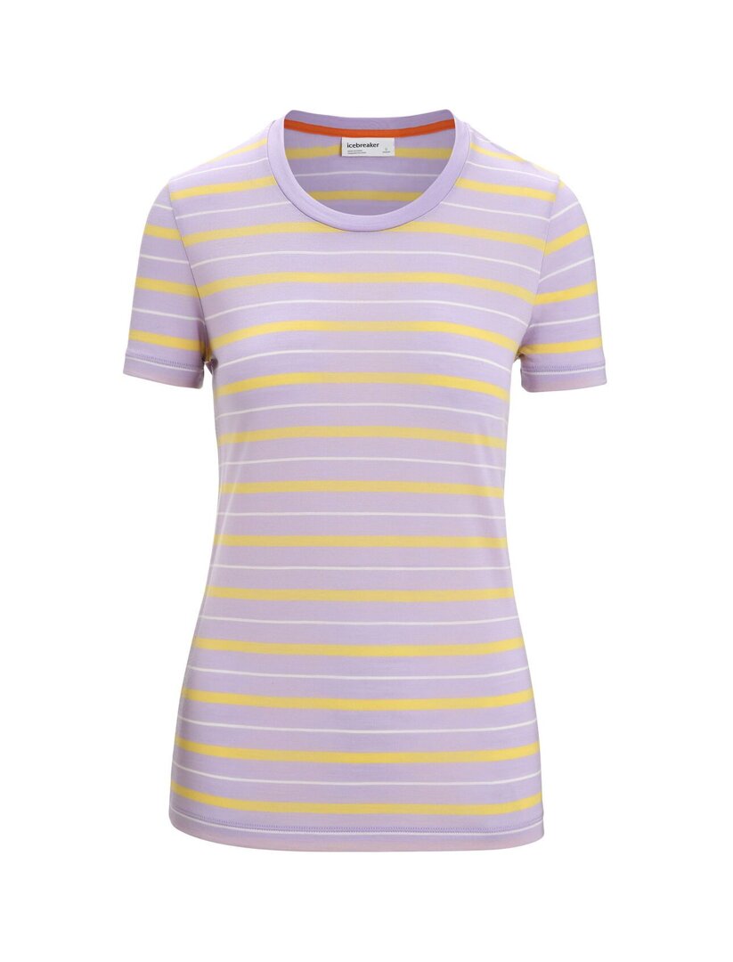 ReadWomen's T-shirt Merino Blend Wave SS Tee Stripe Icebreaker Purple Gaze