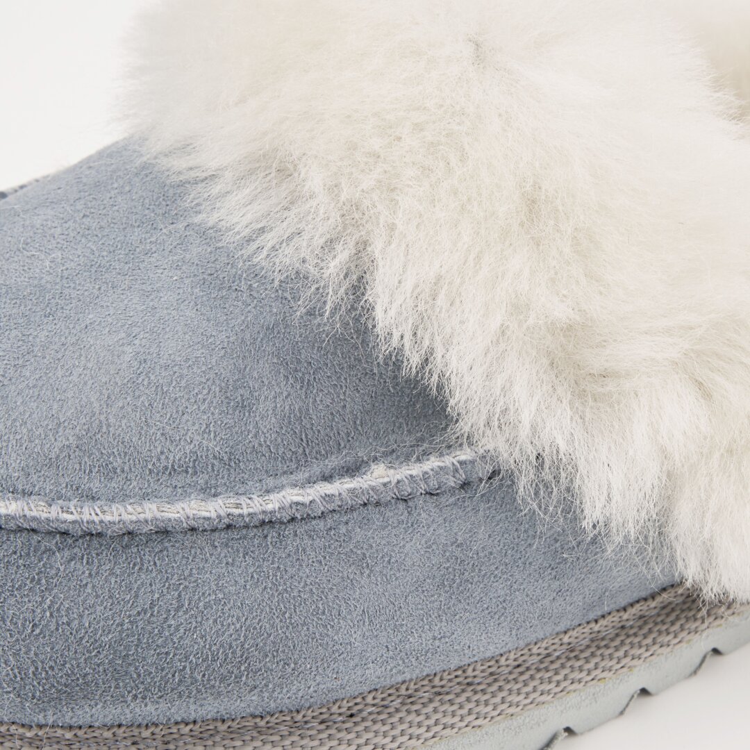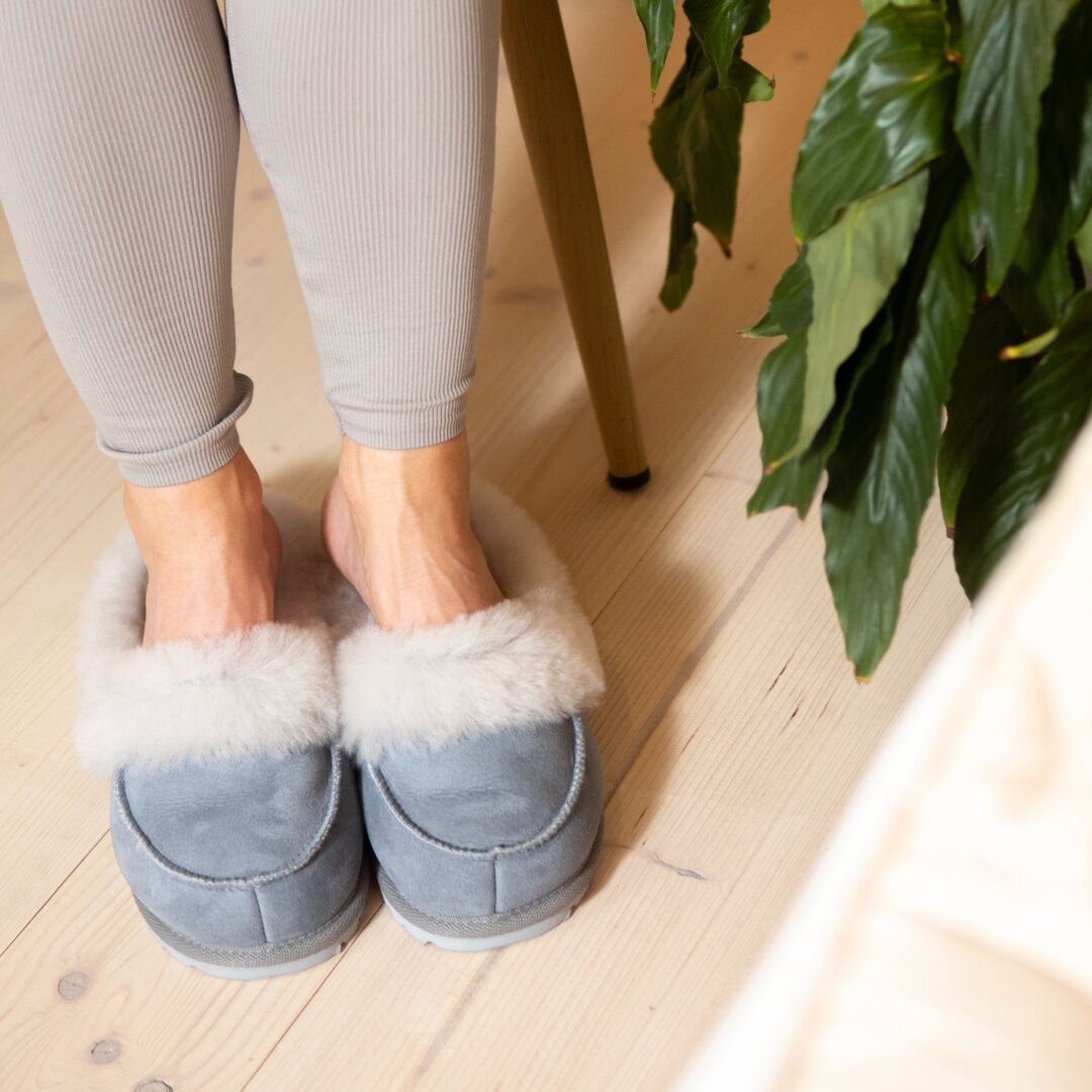 Our deluxe “Vanesa” slippers with fine fur are a combination of high quality natural materials and timeless style. Worsted wool not only feels lovely on the skin, it also has amazing properties.