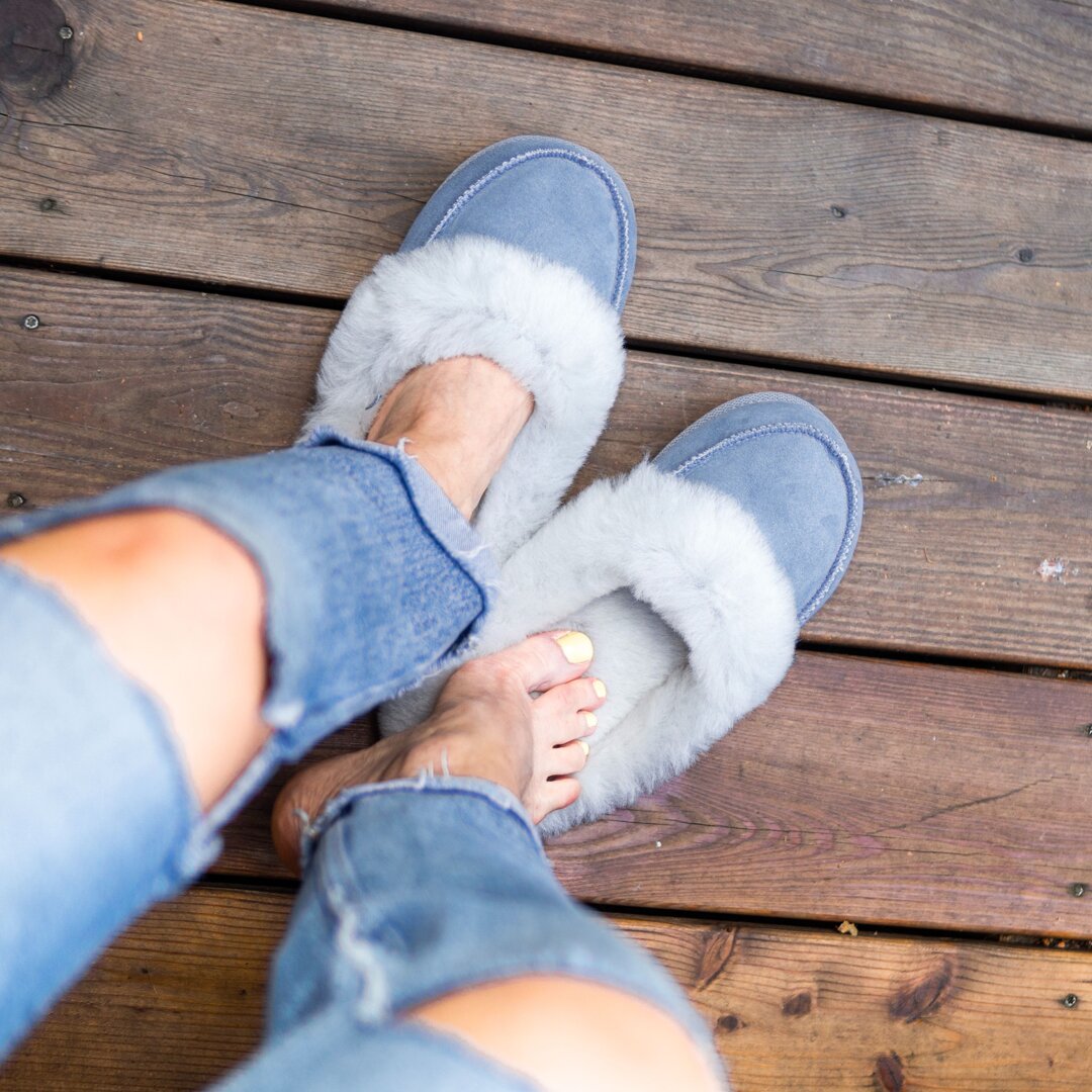 Our deluxe “Vanesa“ slippers with fine fur are a combination of high quality natural materials and timeless style. Worsted wool not only feels lovely on the skin, it also has amazing properties.
