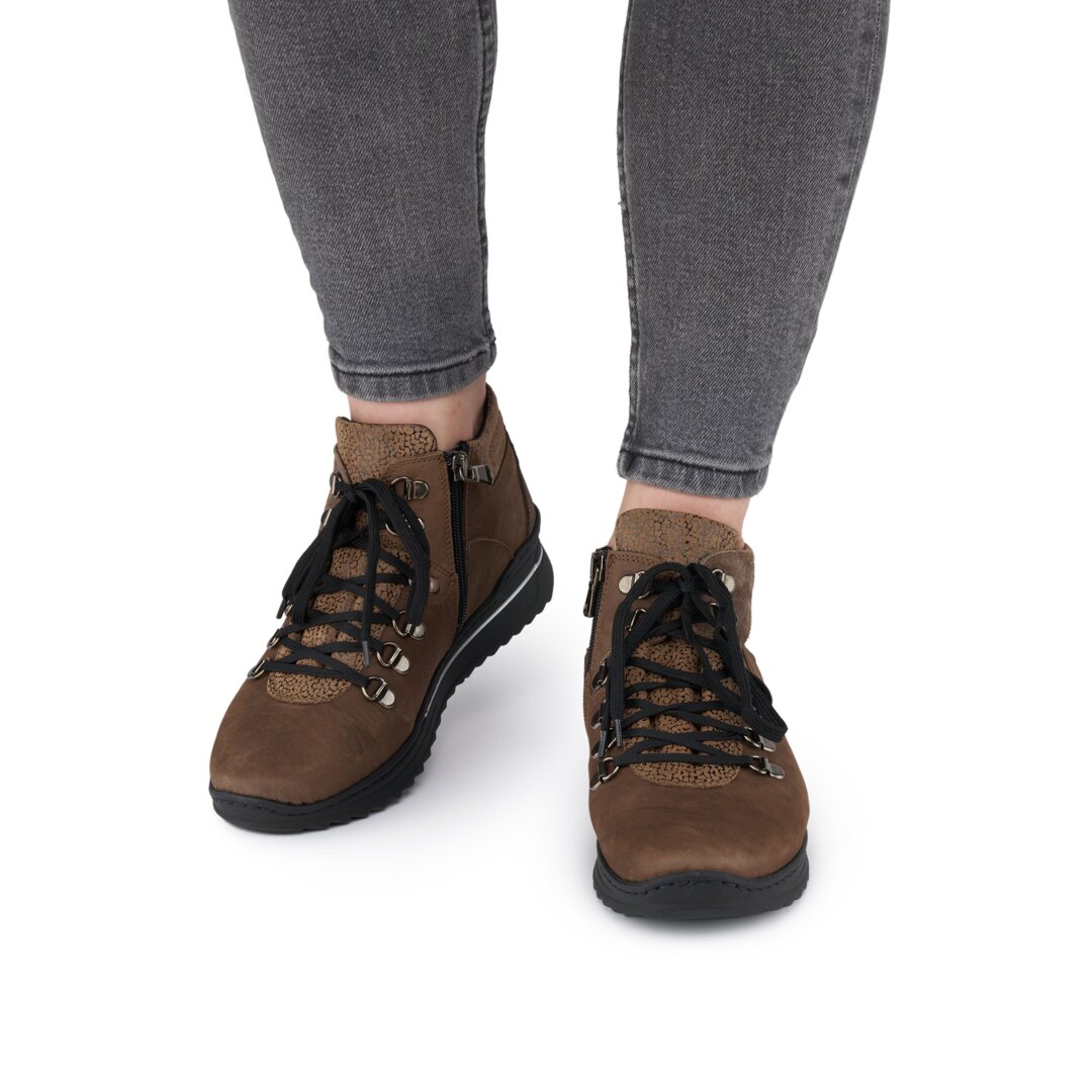 Looking for comfy, stylish footwear for the cooler days of autumn and spring? These boots made of leather and textile can be tightened as needed with laces, yet thanks to the zip on the side, they are really easy to put on.