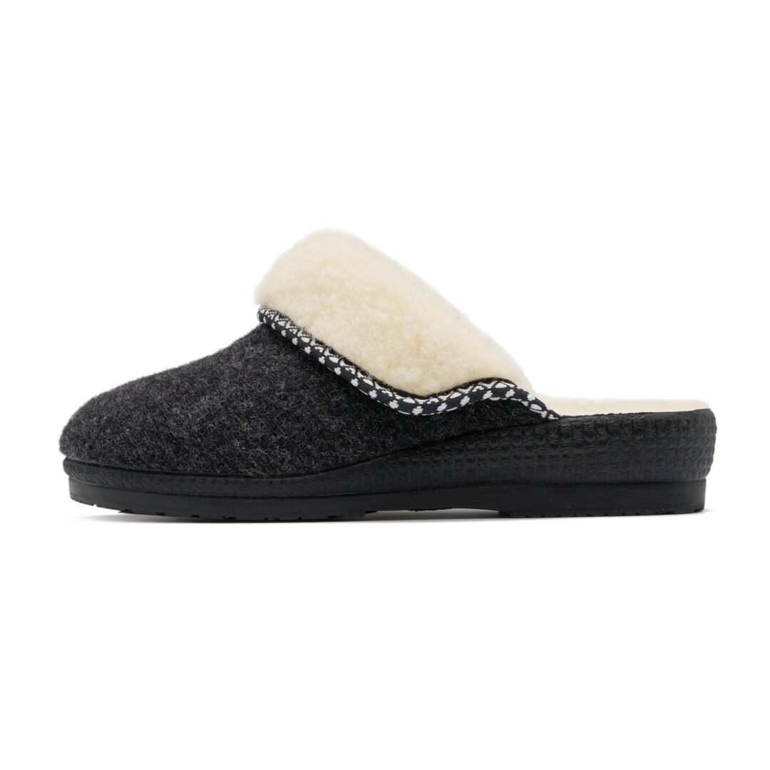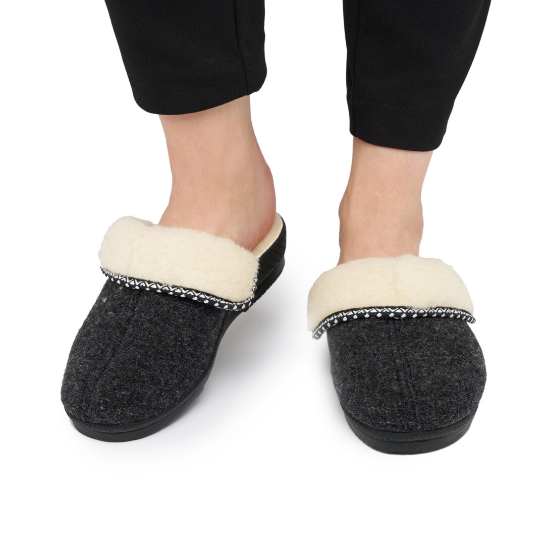 ReadWomen’s Wool Wedge Mule Slippers Dark Grey