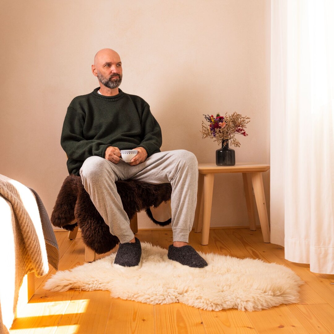 Our soft TV slippers made of Merino wool can be worn in countless situations, so let your imagination run wild. You can wear them when relaxing at home in front of the TV, when sitting by the computer, or you can take them with you on holiday to the mountains and unwind in front of the fireplace. The best part is that you don't have to worry about your feet getting freezing cold.