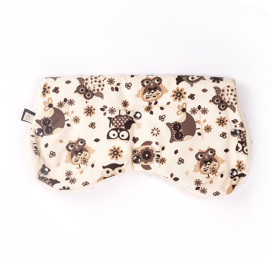 Are you or one of your friends expecting a new family addition and you are wondering what to get as a gift? You cannot go wrong with a hand muff, lined with a beautifully soft and warm Merino wool and protected with waterproof fabric outside. The brown and cream design with owls will look stylish on any pram or pushchair.