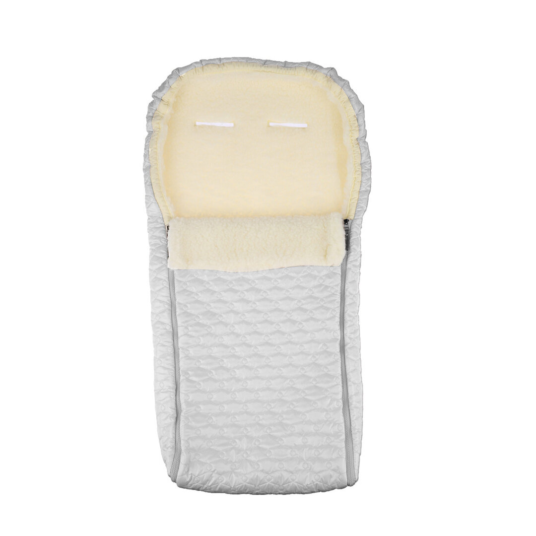 This footmuff for pushchairs in a stylish white colour is suitable to use all year round, thanks to Merino wool lining which has been made to be as soft on the delicate skin of small children as possible. The drawstring around the top means you can keep cold wind from chilling your little one, while the front panel is fully detachable for easier handling.