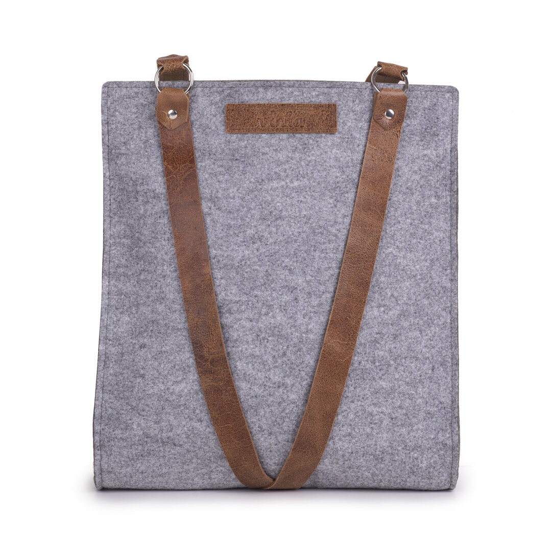 Felt Handbag with Leather Straps Grey