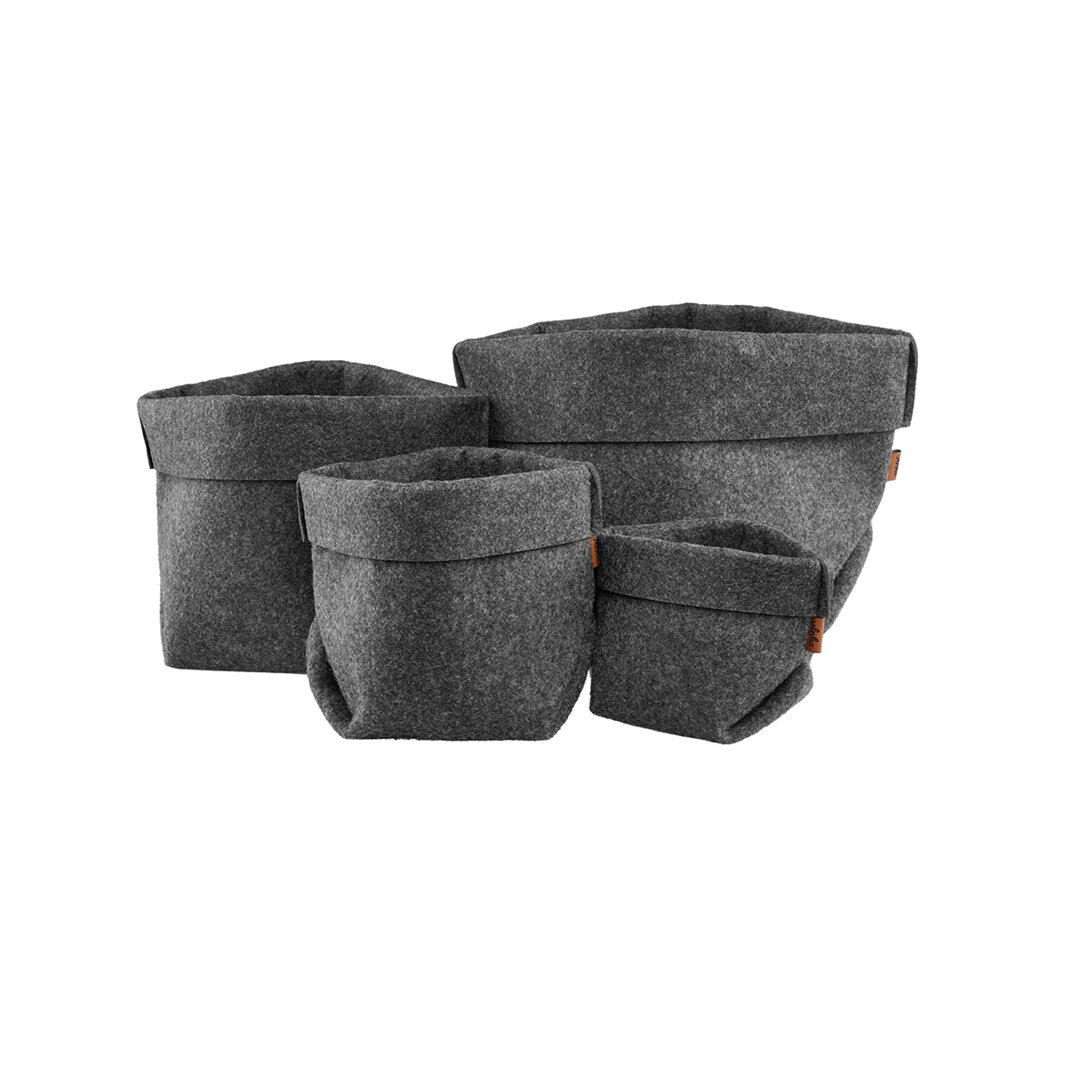 While felt made from 100 % recycled plastic bottles is strong and durable, it is also very light and flexible. We are happy that we can give plastic waste a second life and use it in the form of practical and stylish accessories. Here at Woolvilli, you can choose from lots of shapes and sizes, from small desk organisers to laundry baskets.