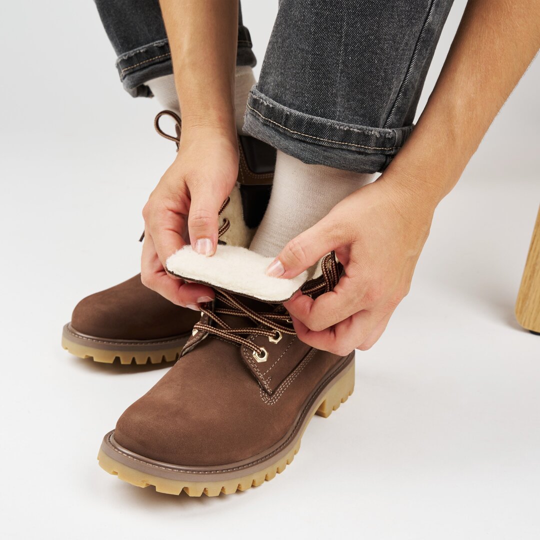 You will be comfortable in the farmer's boots, whether it snows, rains or you have to trudge through the mud. Sheep wool insulation provides frost insulation and a thick sole with a distinctive pattern provides stability on any surface. Shaggy, comfortable, our - these are the unique farmer's boots from Woolvilli.