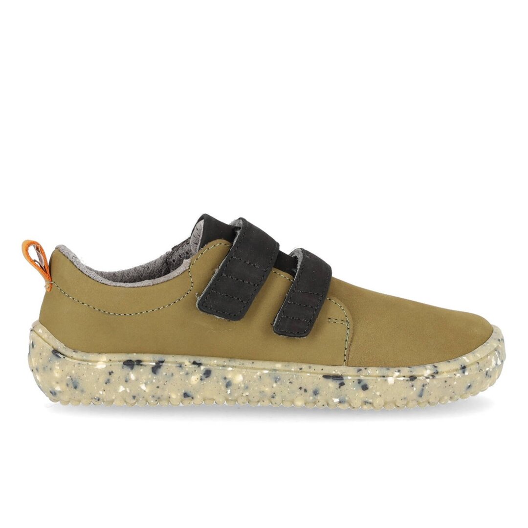 The sole of these Jolly trainers is made from 10 % recycled sole off-cuts and is extremely flexible crosswise as well as lengthwise. It’s 6 mm thick, therefore ensuring maximum contact with the ground when walking and allowing the foot to feel any type of surface, which has a positive effect on the overall development of little feet. The sole has a finely perforated tread and is durable for ordinary activities little ones get up to. Thanks to the practical Velcro straps, they can be tightened well over the ankle so they also fit children with narrow heels. They are a great choice for feet with a dominant big toe and those with a triangular shape, wider at the front, narrower at the heel. The toe box is wide enough to provide plenty of room, which means the movement of toes is not restricted, allowing feet to work naturally when walking.