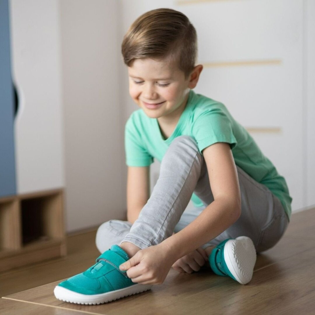 Kids’ Joy Leather Barefoot Trainers Turquoise