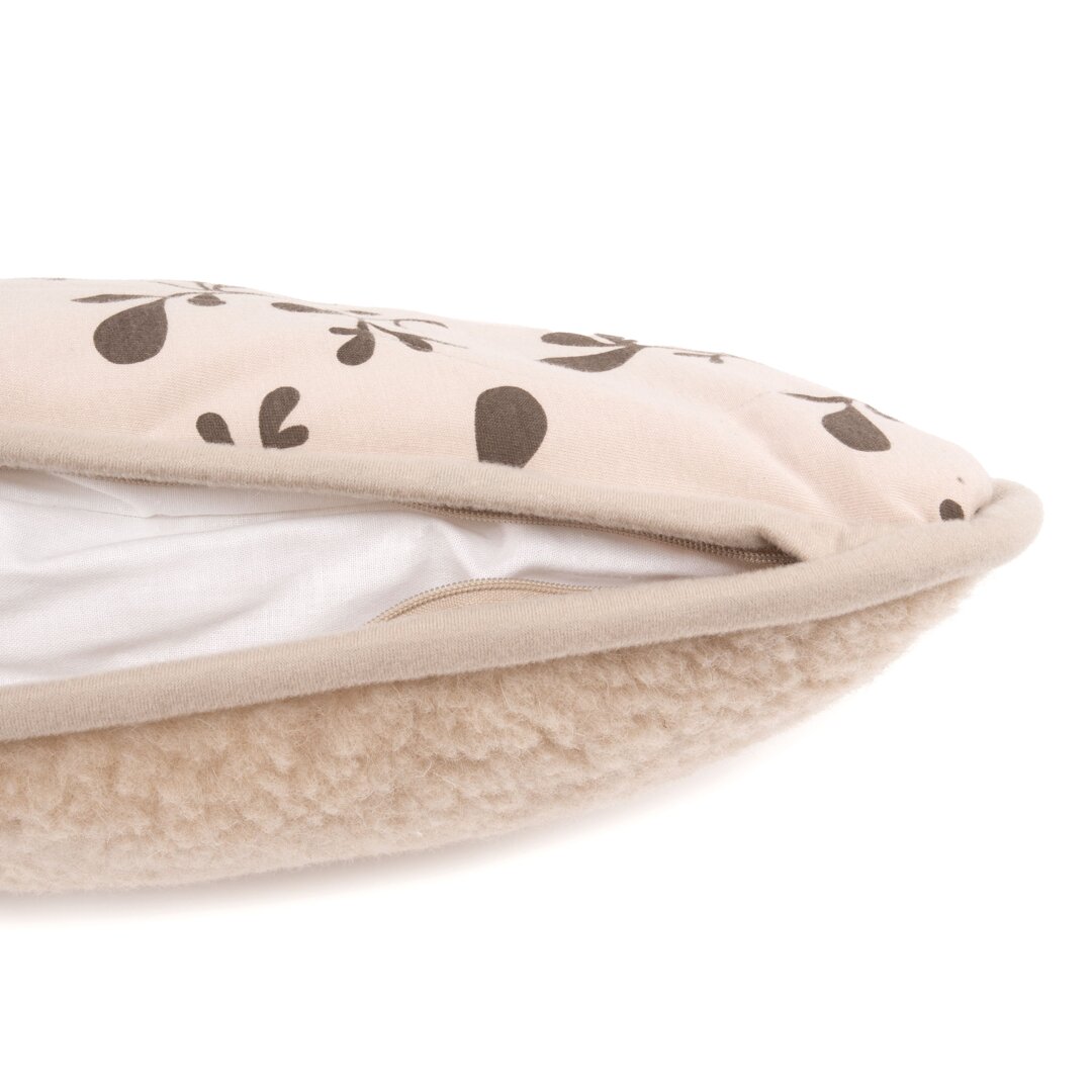 This reversible cushion in a natural light colour will look great in the living room, bedroom as well as on the veranda. While one side of the cushion is woollen, the other is cotton, so you can alternate materials and patterns. The dry heat of sheep’s wool helps with aches and pains as well as with healing injuries.